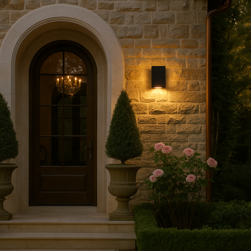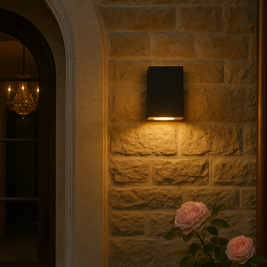 Materiałem, z którego wykonana jest oprawa oświetleniowa, jest lakierowane proszkowo na kolor ciemnego popielu aluminium, co zapewnia wyjątkową trwałość produktu. Oprawa posiada źródło światła skierowane w dół, co fantastycznie oświetla wejście do domu oraz numer posesji, elewację biura czy obiektu hotelowego. Lampa pozwoli na komfortowe poruszanie się wokół budynku w godzinach wieczornych.