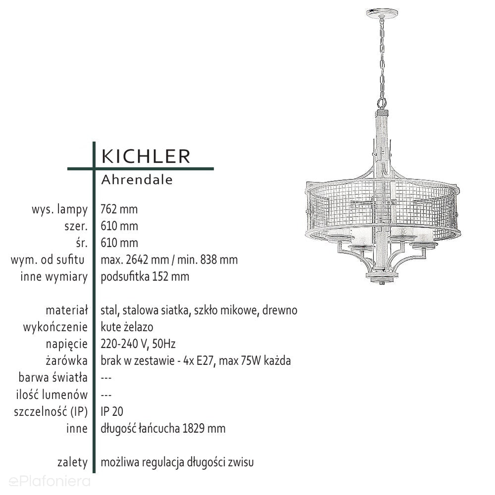 Lampa wisząca 61cm, metalowa siatka - kute żelazo, do salonu kuchni sypialni (4xE27) Kichler (Ahrendale)