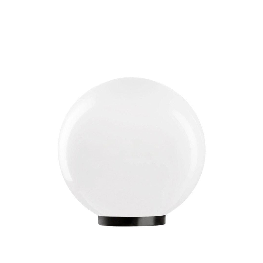 Nowoczesna, zewnętrzna, o IP 43, lampa mleczna o pięciu średnicach 20cm/25cm/30cm/40cm/50cm lub przezroczysto-dymiona o trzech średnicach 20cm/25cm/30cm na czarnej podstawie, do ogrodu, na trawnik, na skalnik, na taras, wzdłuż alejki, na kostkę brukową, do centrów handlowych, wokół biur i innych przestrzeni użytkowych.