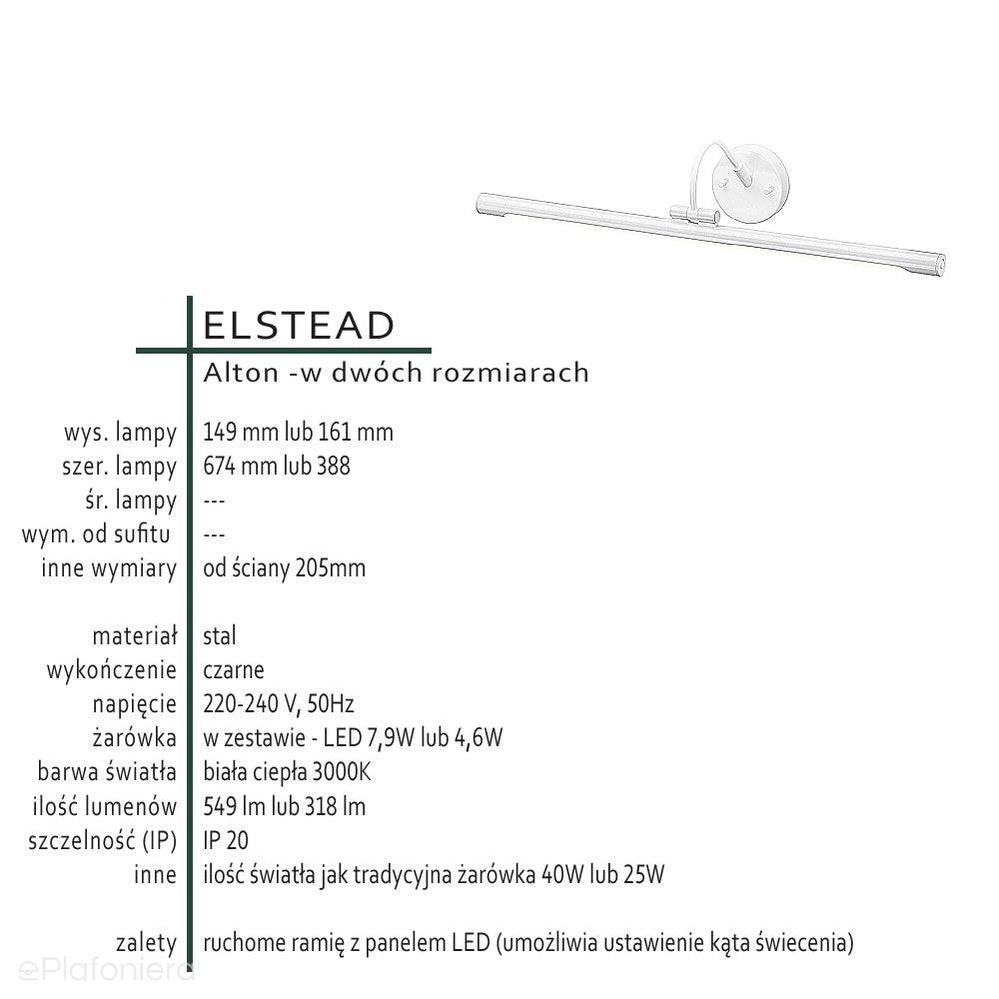 Lampa ścienna LED kinkiet (czarny 67/39cm) nad obraz lustro do salonu sypialni, Elstead (Alton)