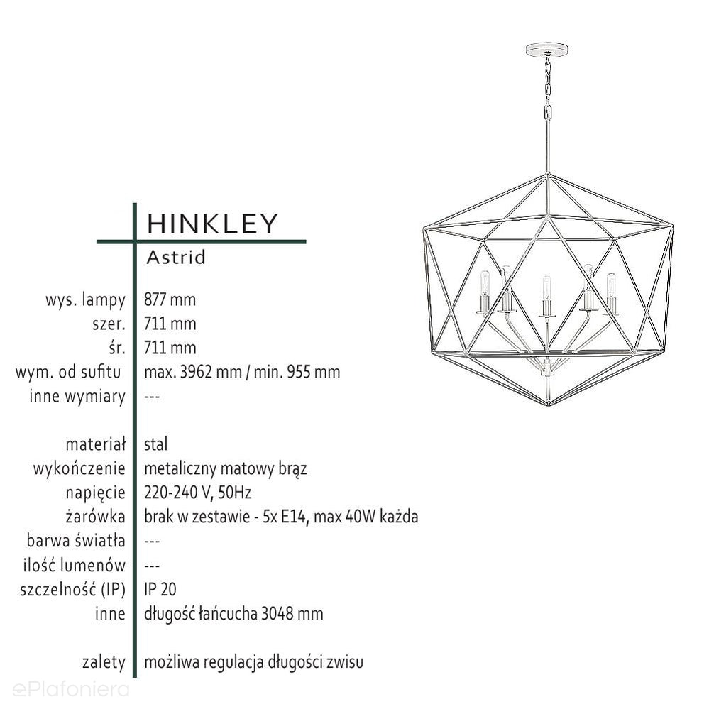 Astrid - loftowa lampa wisząca - Hinkley, druciana - ażurowa klatka (70x70cm / 5xE14)