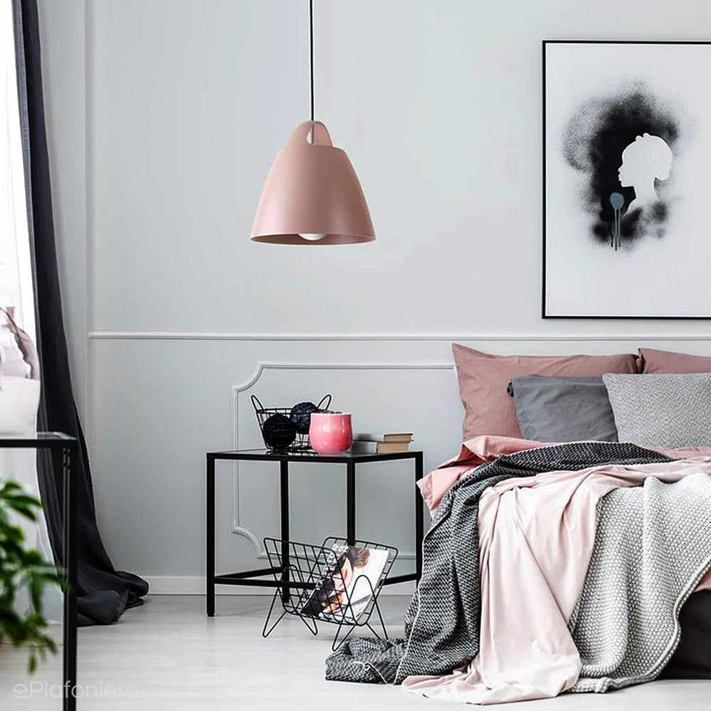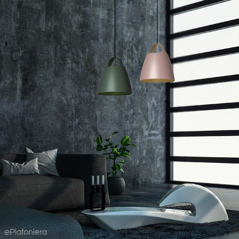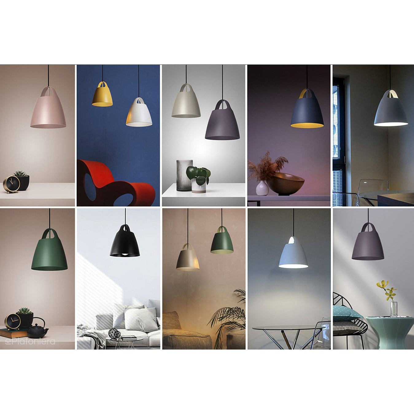 Nowoczesna lampa wisząca na maksymalnej długości 120 cm, aluminiowy klosz w dwóch wielkościach 28cm lub 35cm, malowany proszkowo, w dziewięciu ciepłych, trendowych kolorach – pastelach matowych, które każdy z łatwością dopasuje do siebie i swojego wnętrza. Możliwa regulacja wysokości lampy.