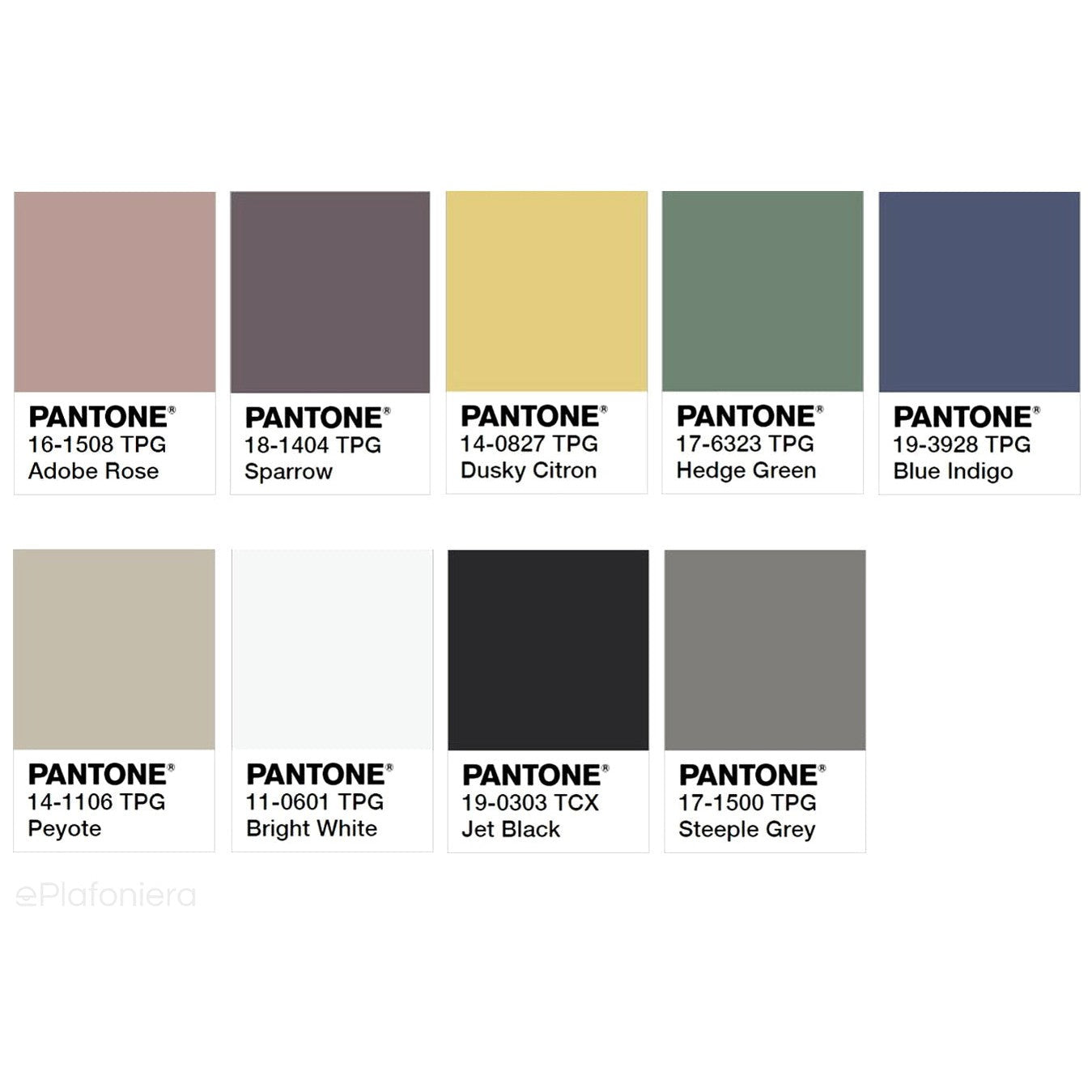 Podsufitka lampy również aluminiowa w kolorze klosza.