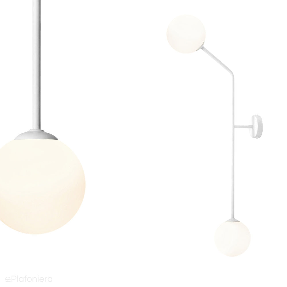 Biała lampa do salonu, mleczne kule na rurce (pionowy kinkiet 2xE14) Aldex (Pure) 1064D2