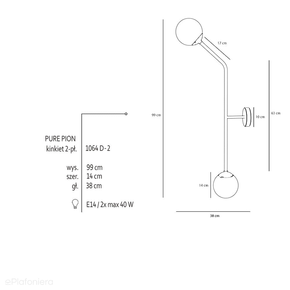 Źródło światła – 2 żarówka E14 o mocy max 40W.