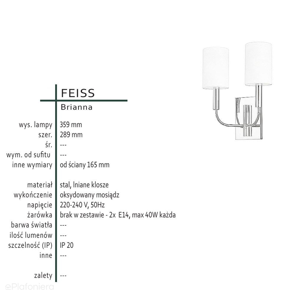 Nowoczesna lampa ścienna (kinkiet 2xE14) do salonu sypialni (oksydowany mosiądz) Feiss (Brianna)