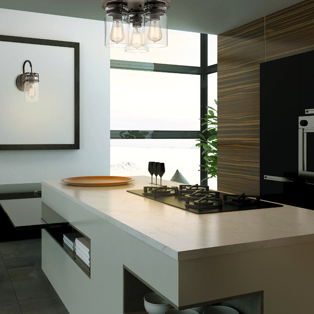 Trzy szklane klosze w kształcie słoików z widoczną ozdobną żarówką na okrągłej podstawie w kolorze starego brązu z pewnością przypadną do gustu fanom niekonwencjonalnego oświetlenia dekoracyjnego w kuchni, łazience, przedpokoju, sypialni w stylu nowoczesnym, jak i retro.