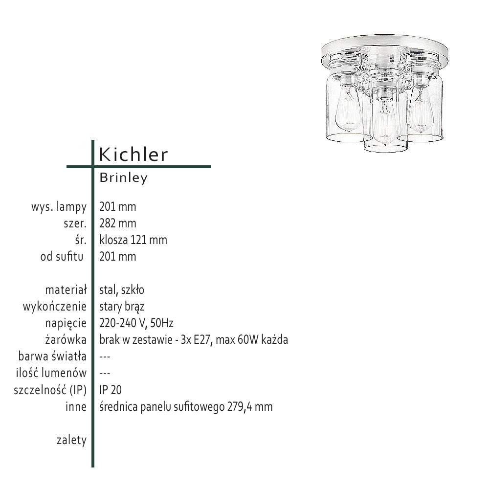 Lampa sufitowa szklany klosz (stary brąz) plafon do kuchni salonu 1xE27, Kichler (Brinley)