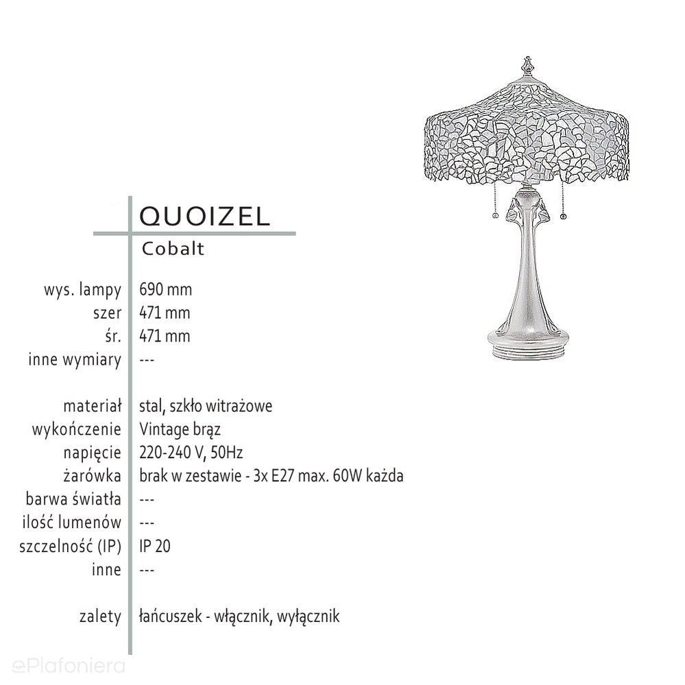 Tiffany lampa stołowa Cobalt, Quoizel