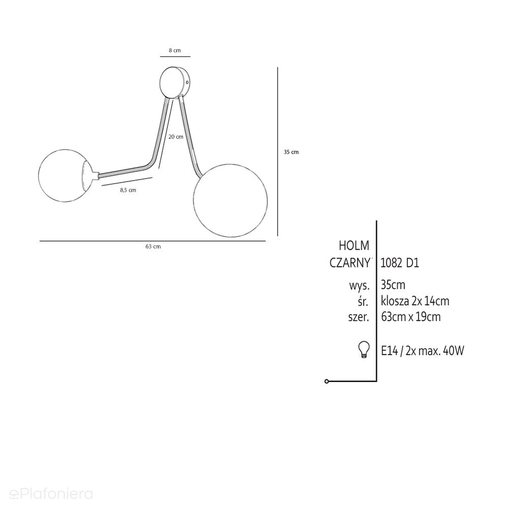 Czarna lampa ścienna - kinkiet, białe kule 2x14cm (E14) Aldex (Holm) 1082D1