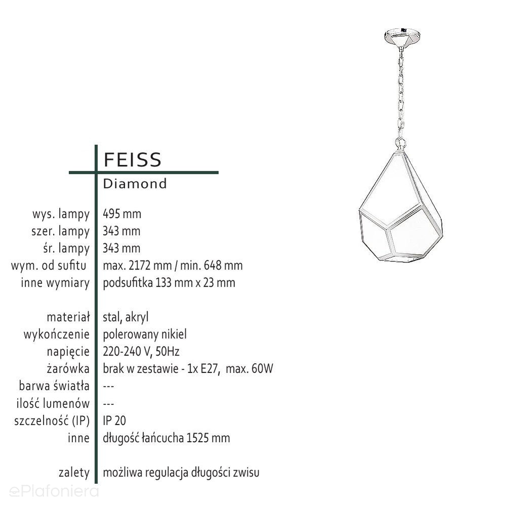 Lampa wisząca - diament 34cm (akryl, nikiel) do salonu sypialni (1xE27) Feiss (Diamond)