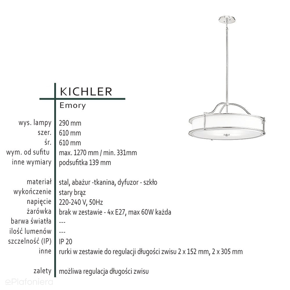 Nowoczesna lampa wisząca 61cm (stary brąz - szkło) do kuchni jadalni salonu (4xE27) Kichler (Emory)