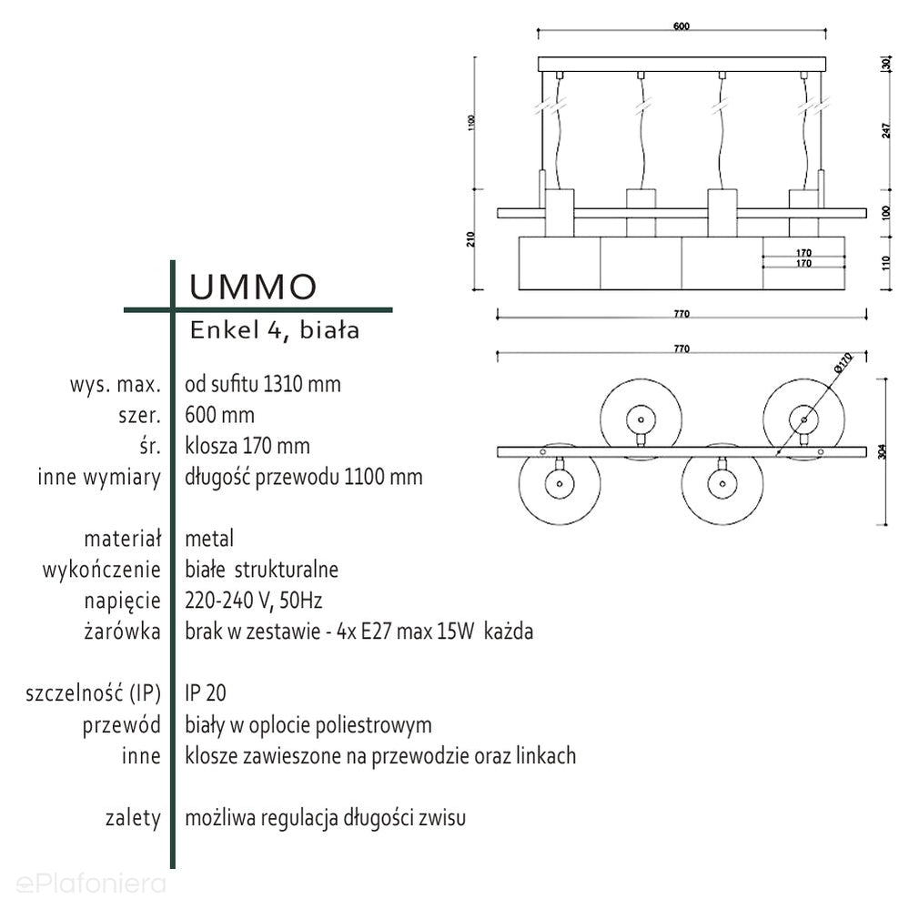 Przy zastosowaniu standardowych żarówek będą one niewidoczne, zaś żarówki o większej średnicy będą wystawać poza obrys klosza, co uatrakcyjni wygląd lampy.
