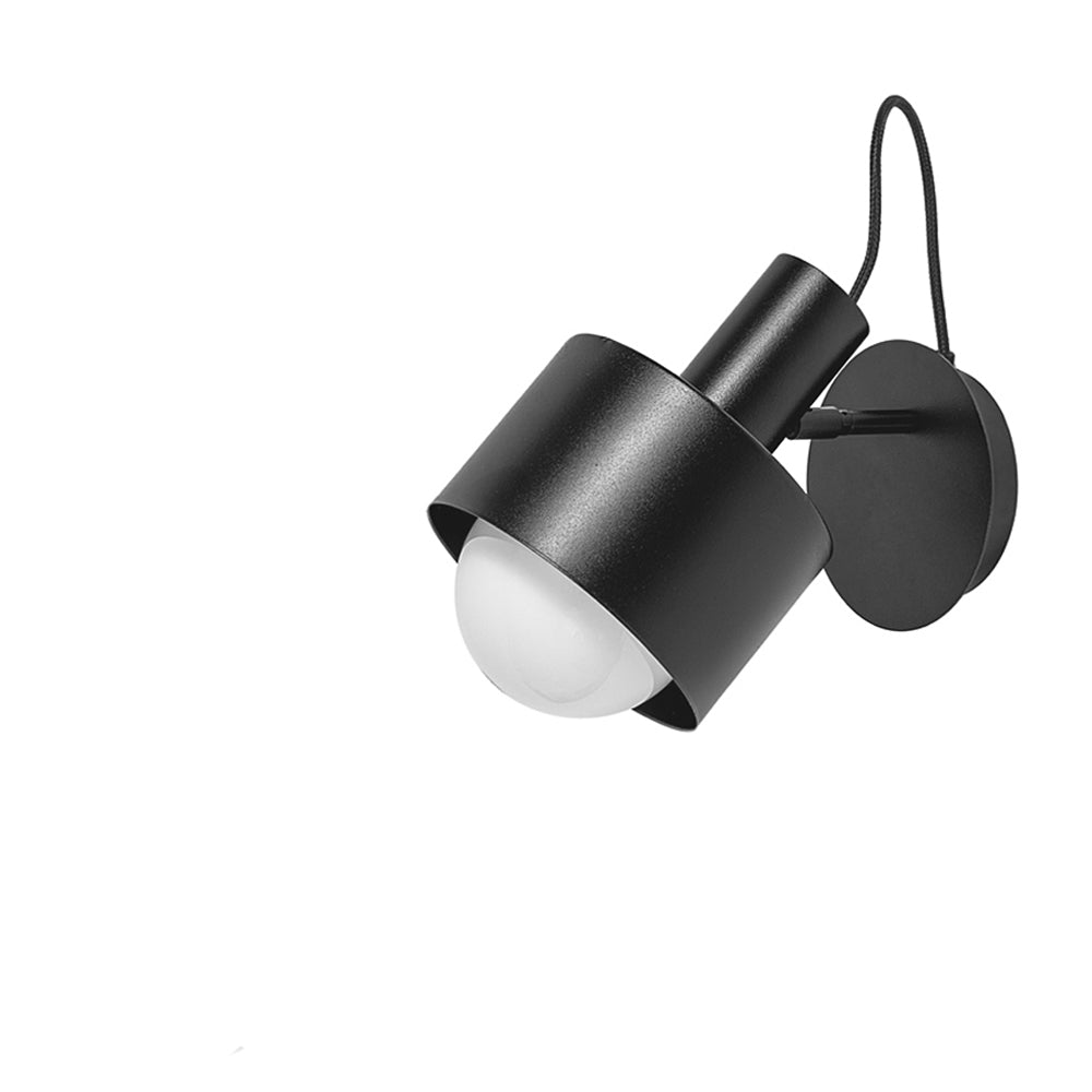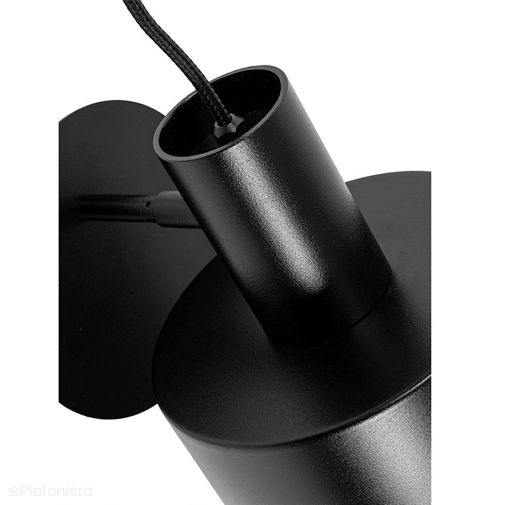 Nowoczesna lampa ścienna z widocznym kablem w oplocie, biały/czarny, lakierowany klosz – reflektor z możliwą regulacją.