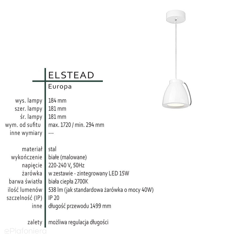 Biała lampa 18cm, LED 15W - wisząca do kuchni jadalni salonu Elstead (Europa)