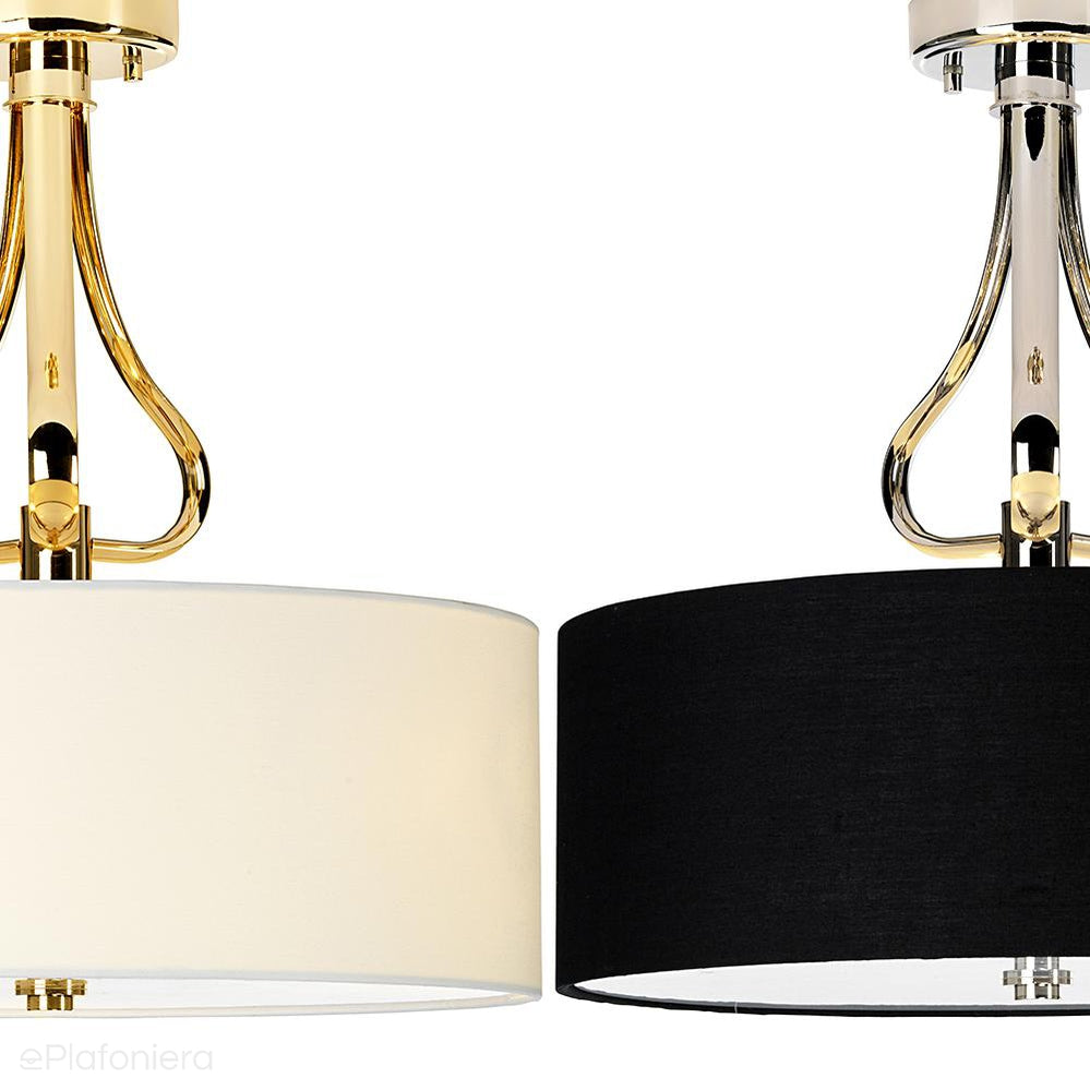 Elegancka, romantyczna plafoniera z białym abażurem na krótkiej nodze w kształcie serca w kolorze francuskiego złota na trzy żarówki, o podwyższonym stopniu szczelności IP 44 – bezpieczna również w pomieszczeniach o dużej wilgotności.