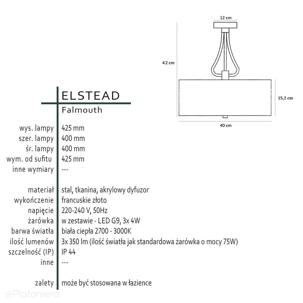 Romantyczna lampa wisząca (biała, złota) sufitowa do łazienki sypialni salonu (G9 3x4W) Elstead (Falmouth)