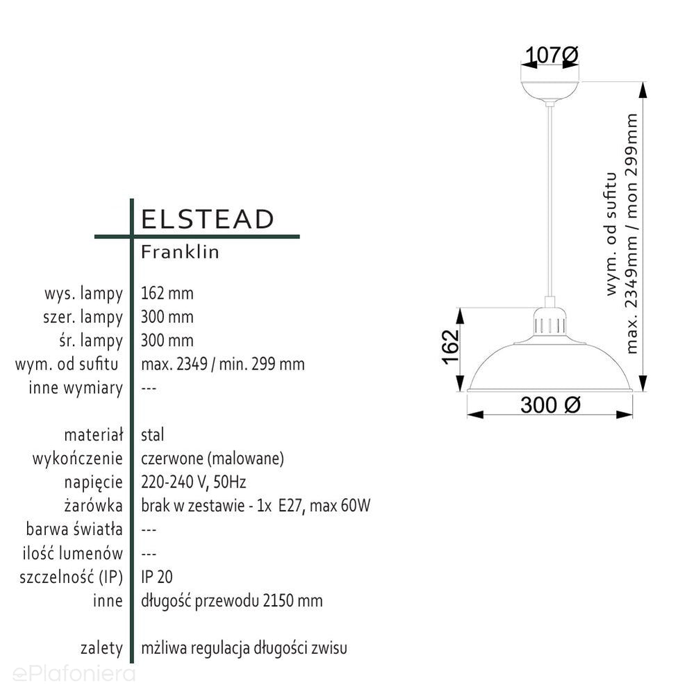 Czerwona lampa wisząca Franklin w stylu loftowym / retro - Elstead (1xE27)