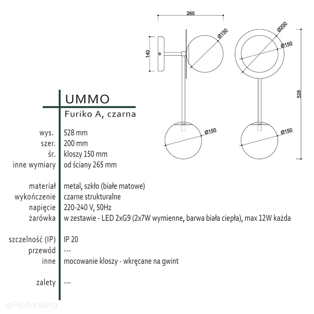 Nowoczesny czarny kinkiet kule - Furiko A, Ummo