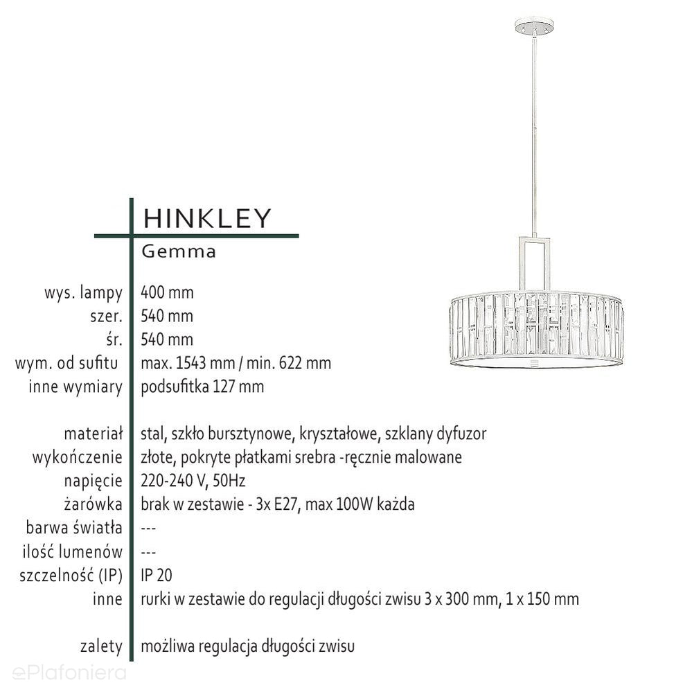 Luksusowy żyrandol Gemma z płatkami srebra i kryształami - Hinkley (złota, bursztyn) 54cm / 3xE27