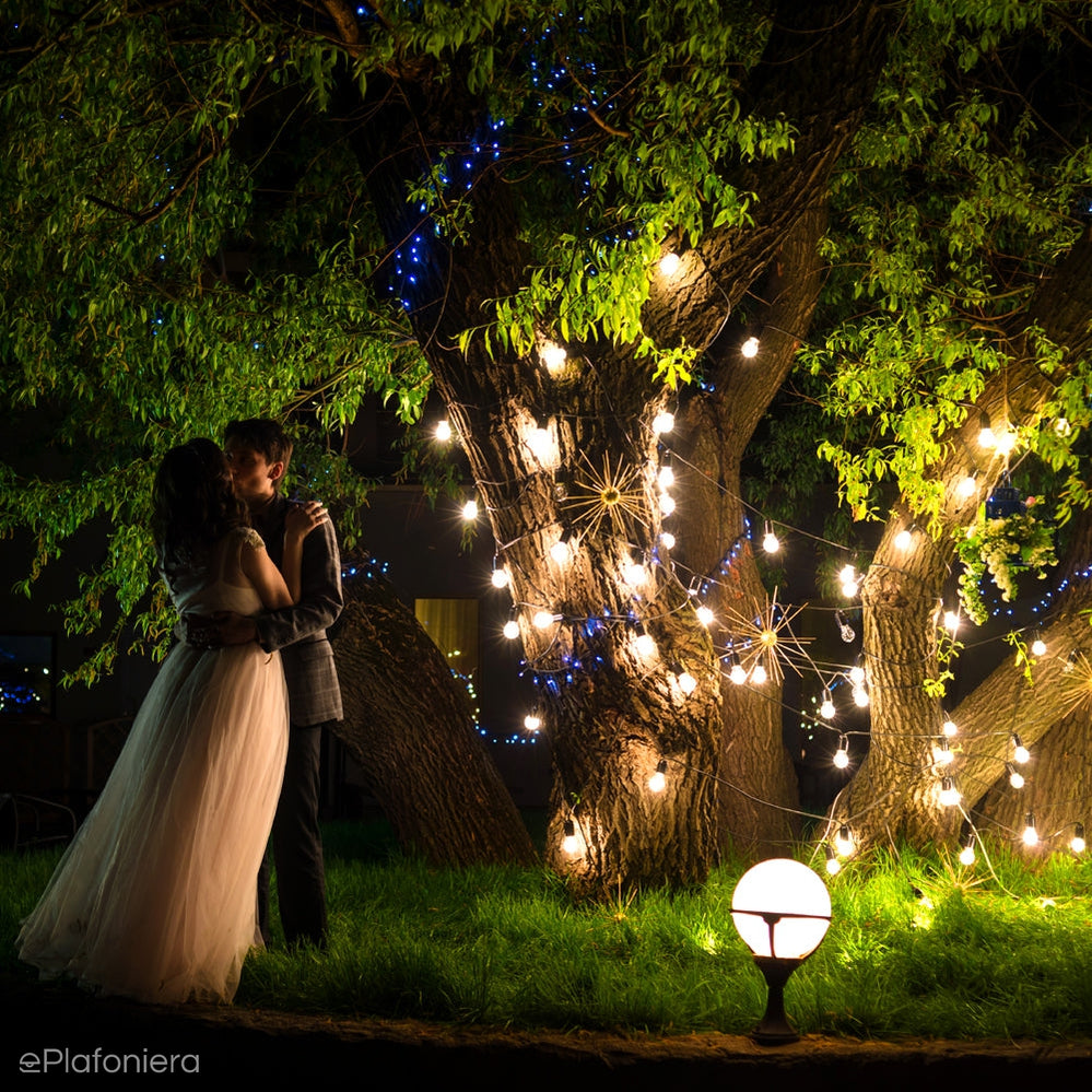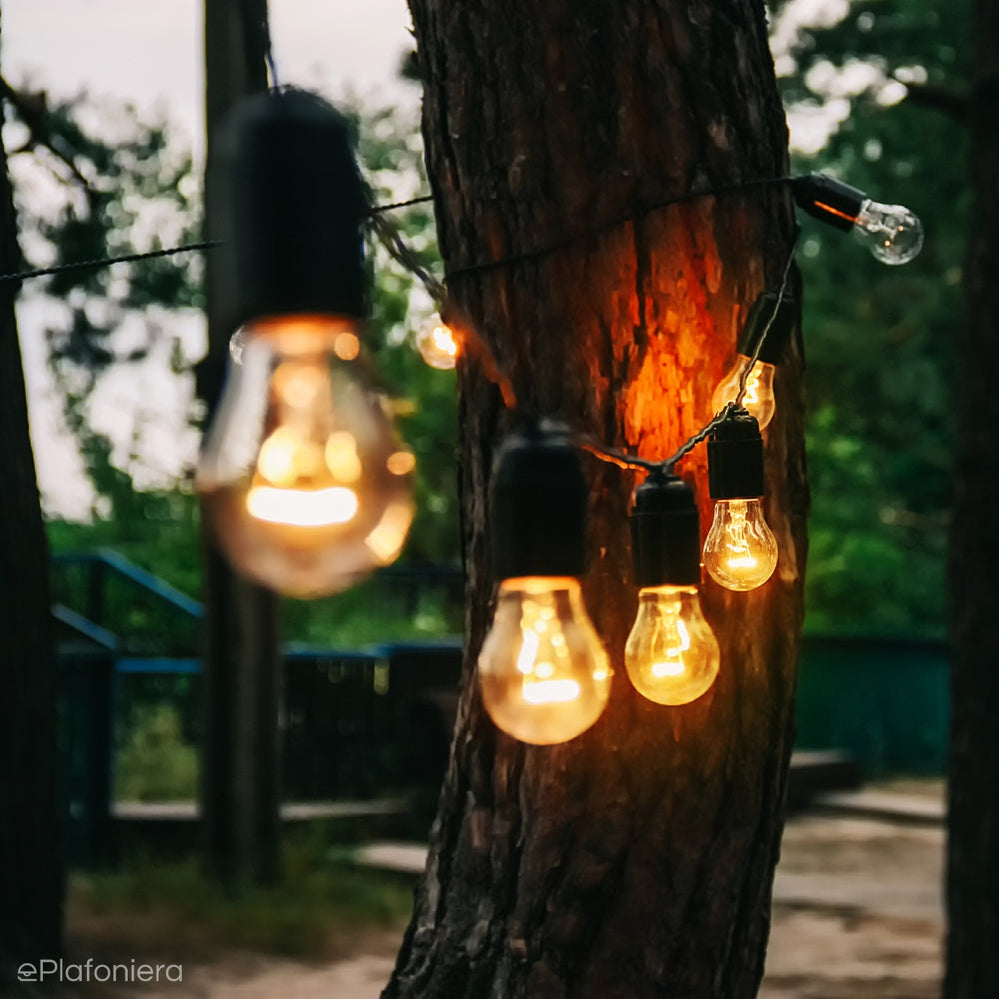 Taki zestaw dużej ilości żarówek może stworzyć niepowtarzalną wieczorną dekorację, którą warto mieć w swoim ogrodzie.