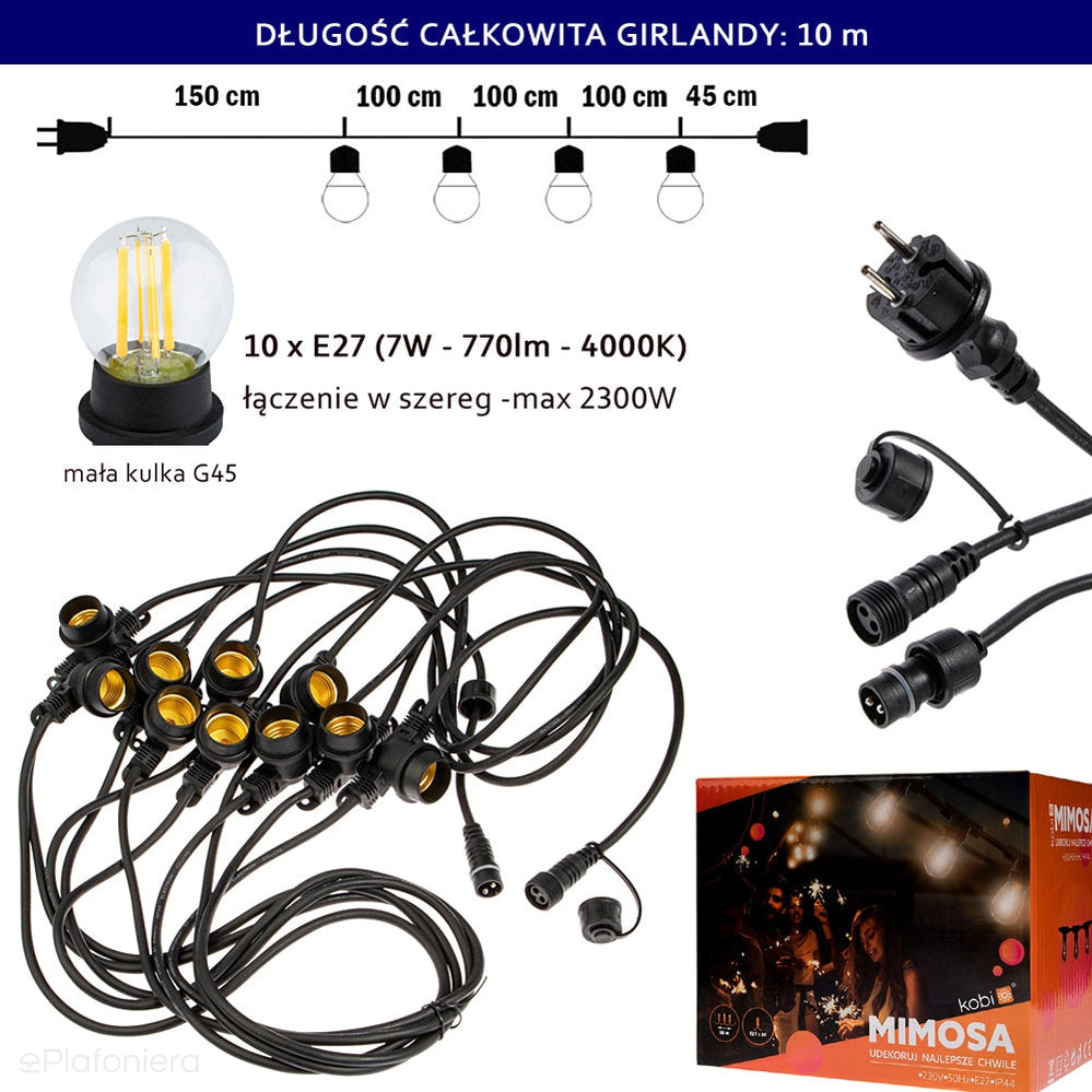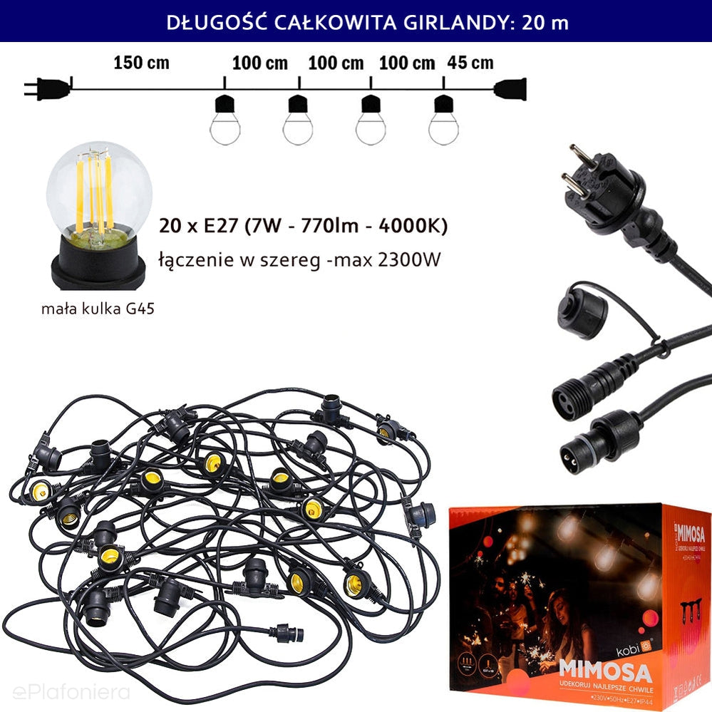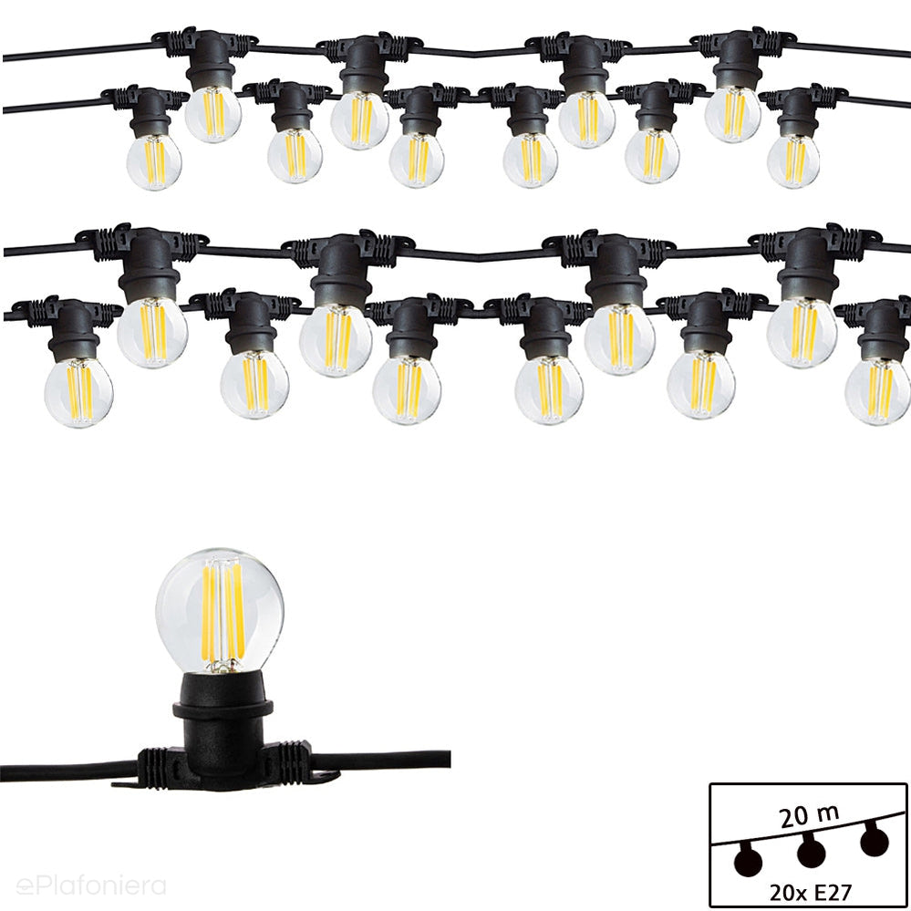 Girlanda zewnętrzna 10m/20m (E27, LED 7W 4000K) lampa ogrodowa, weselna (Kobo PN)