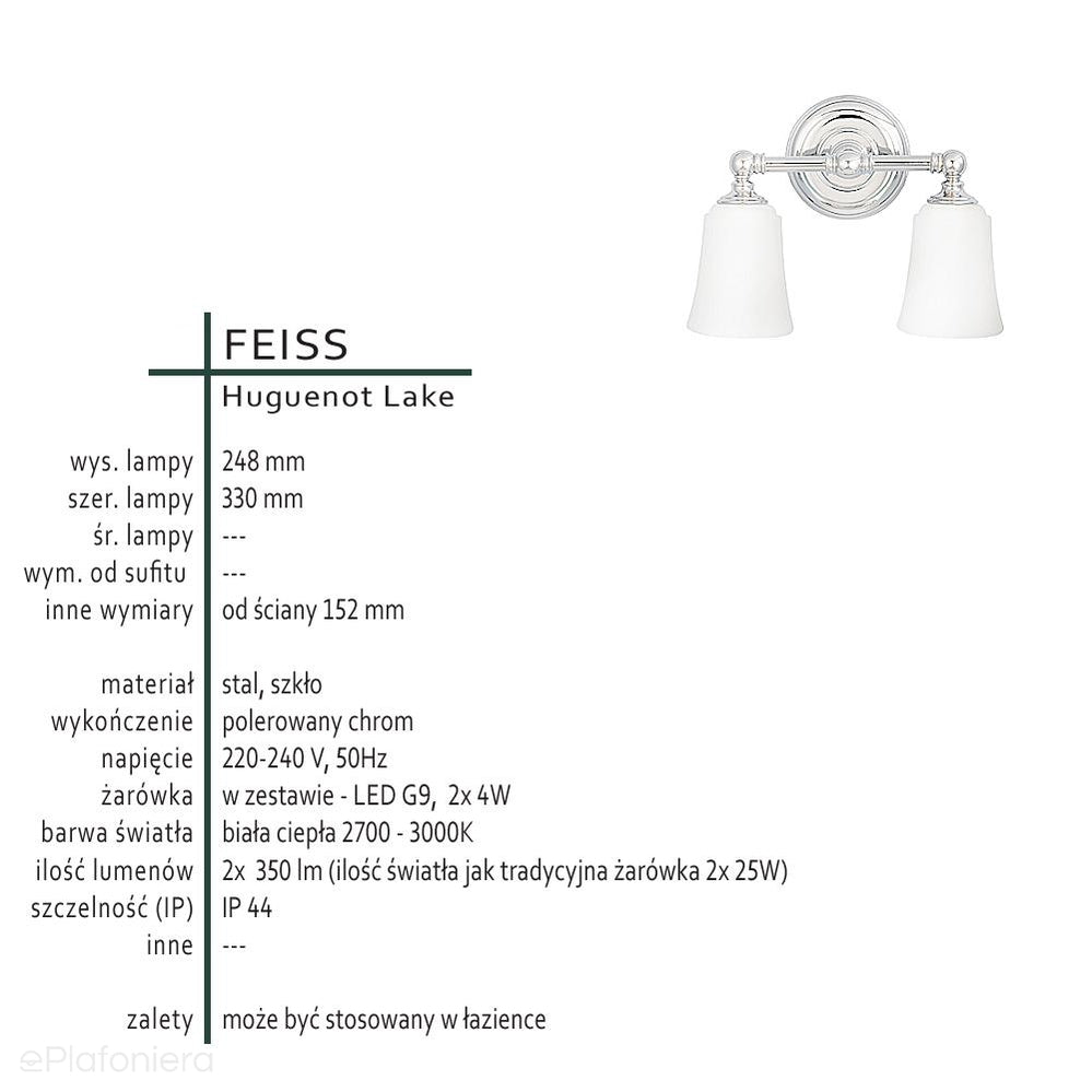 Lampa do łazienki (mleczne szkło, chrom) kinkiet łazienkowy (G9 2x4W) Feiss (Huguenot)
