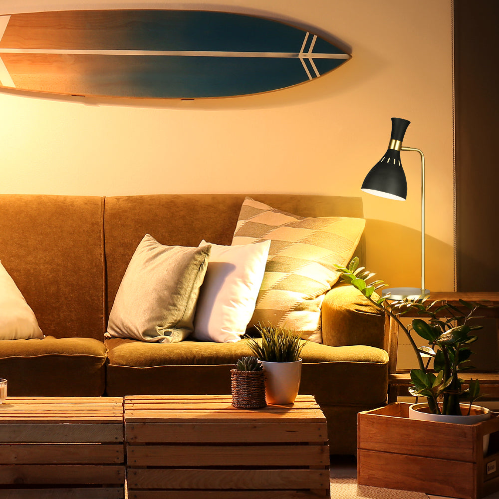 Czarna metalowa lampa stojąca, biurkowa do salonu sypialni, 1xE27 Feiss (Joan)