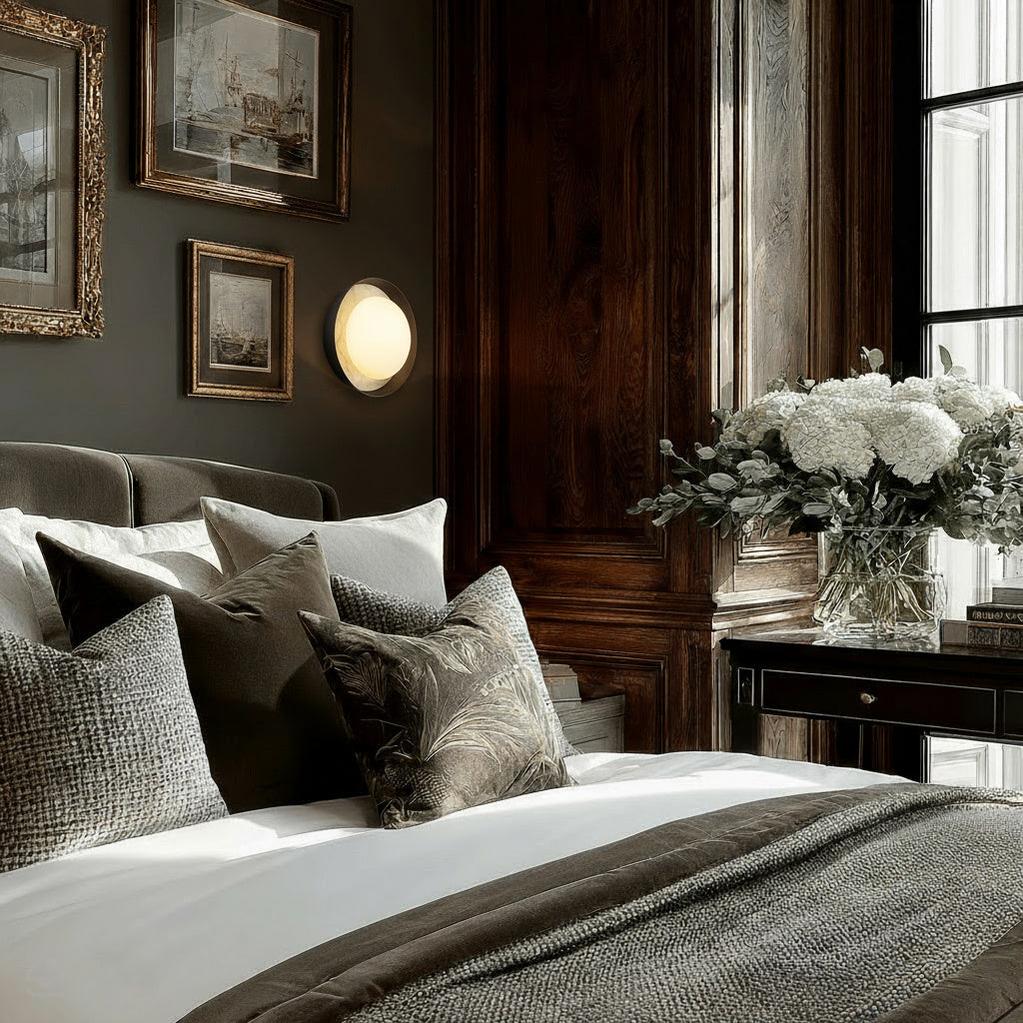 Okrągły kinkiet LED Alonso alabaster - Miejski brąz