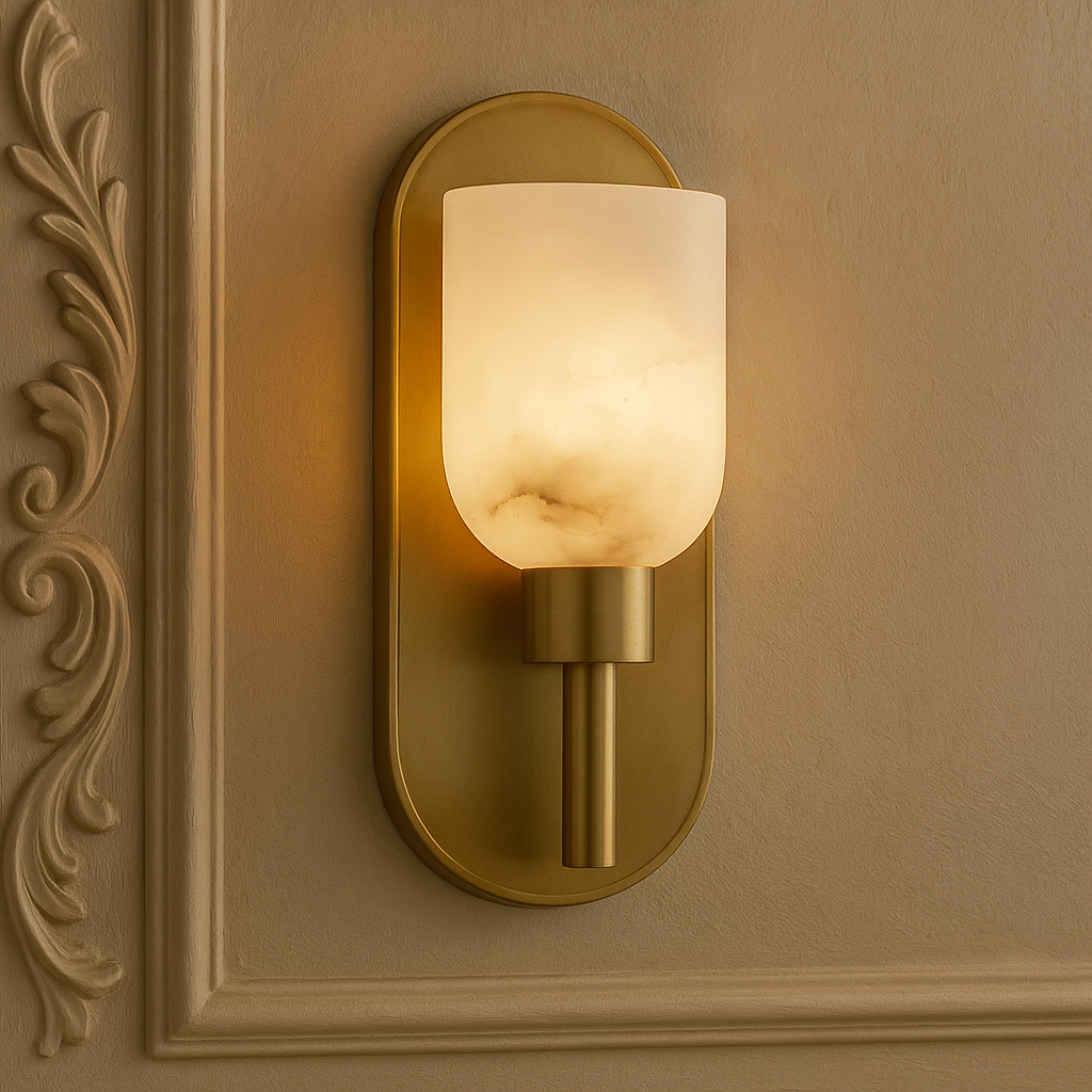 Kinkiet Lucian z 1 źródłem światła w wykończeniu vintage mosiądz emanuje klasyczną elegancją w nowoczesnym wydaniu. Organiczne linie ramienia i rozety, połączone z kloszem z alabastru, tworzą harmonijną całość, która sprawdzi się zarówno w klasycznych, jak i eklektycznych aranżacjach. *Alabaster jest naturalnym materiałem o zróżnicowanym użyleniu i tonacji – nie ma dwóch identycznych egzemplarzy.