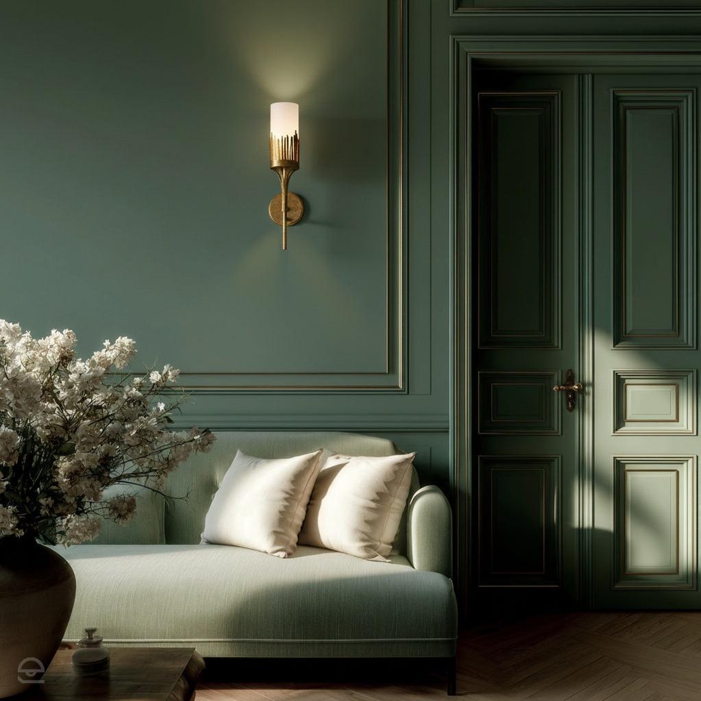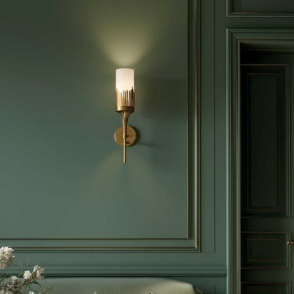 Sawgrass to kolekcja inspirowana naturalnymi formami i klasycznymi motywami. Kinkiet z 1 źródłem światła przyciąga wzrok wyraźnie zarysowanymi kształtami i opalowym szkłem osadzonym w oprawie w wykończeniu płatkowe złoto. Charakterystyczne detale nawiązują do tradycyjnych kinkietów typu torchiere.