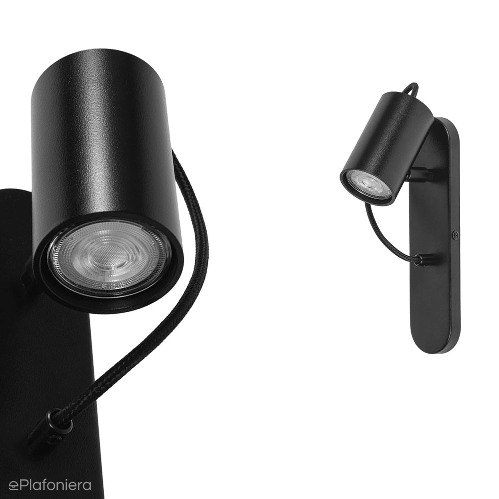 Nowoczesny, niezwykle modny kinkiet z możliwością zamontowania na ścianie, stelaż metalowy w kolorze czarnym, z kloszem (tuba) z żarówką o skupionym świetle GU10.