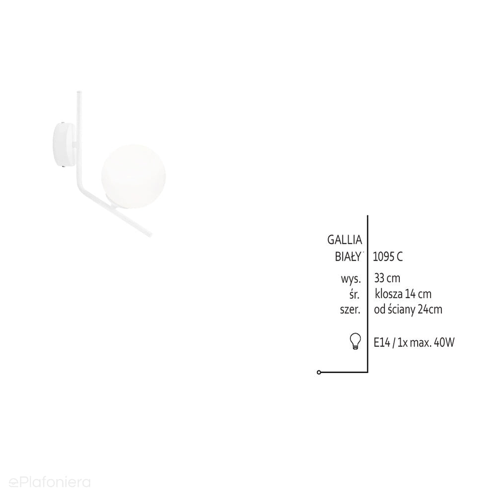 Lampa ścienna, biały kinkiet, jedna mleczna kula 14cm (E14) Aldex (Gallia) 1095C