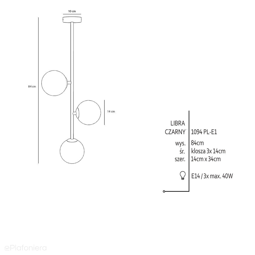 Lampa sufitowa 84cm, czarna, mleczne kule 3x14cm (E14) Aldex (Libra) 1094PL-E1