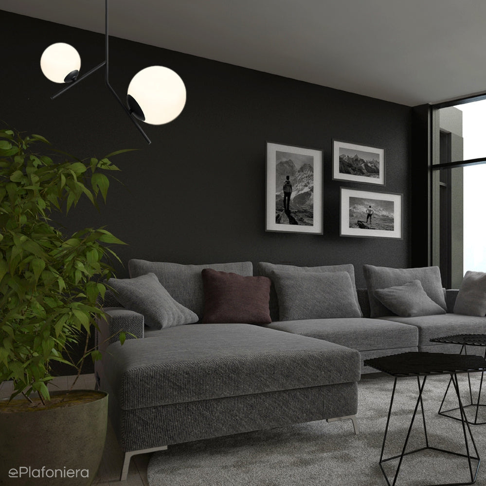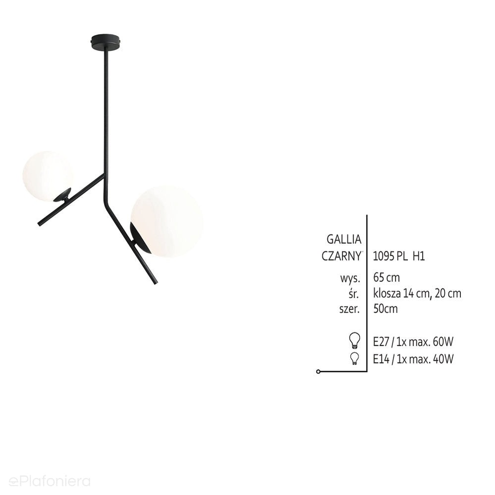 Lampa sufitowa, czarna, dwie mleczne kule 14cm/20cm (E14/E27) Aldex (Gallia) 1095PL-H1