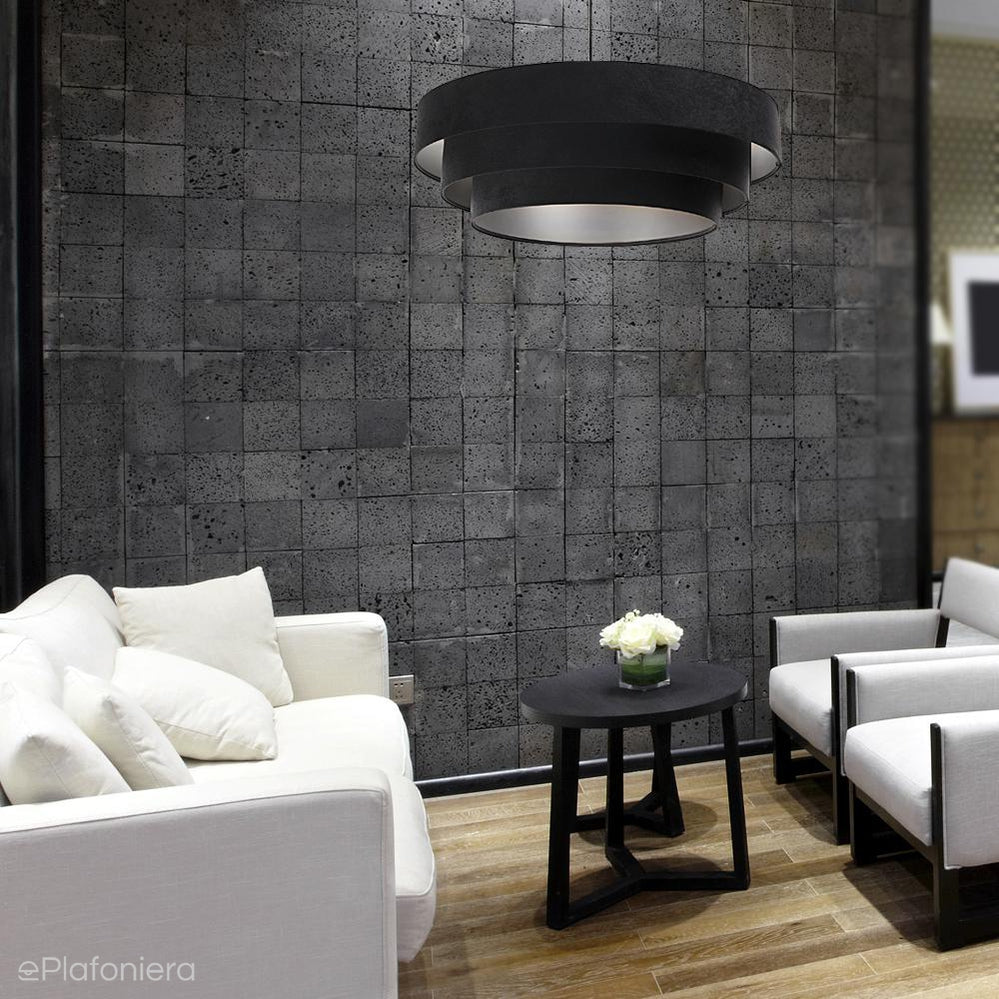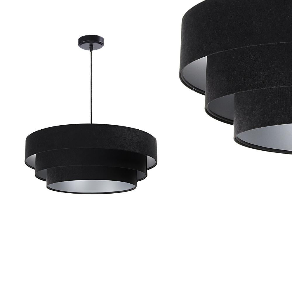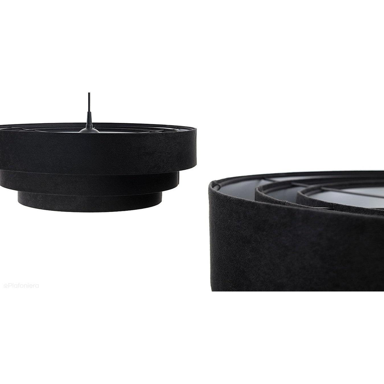 Welurowa lampa wisząca w stylu nowoczesnym oraz minimalistycznym , trzy współśrodkowe walce. Na zewnątrz walec jest pokryty welurem, a wewnątrz tworzywem sztucznym odbijającym światło.