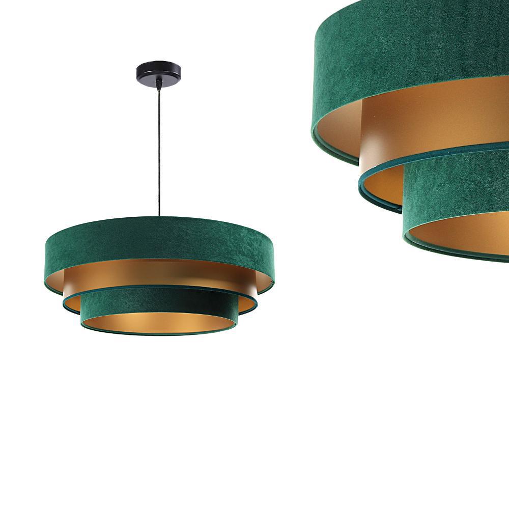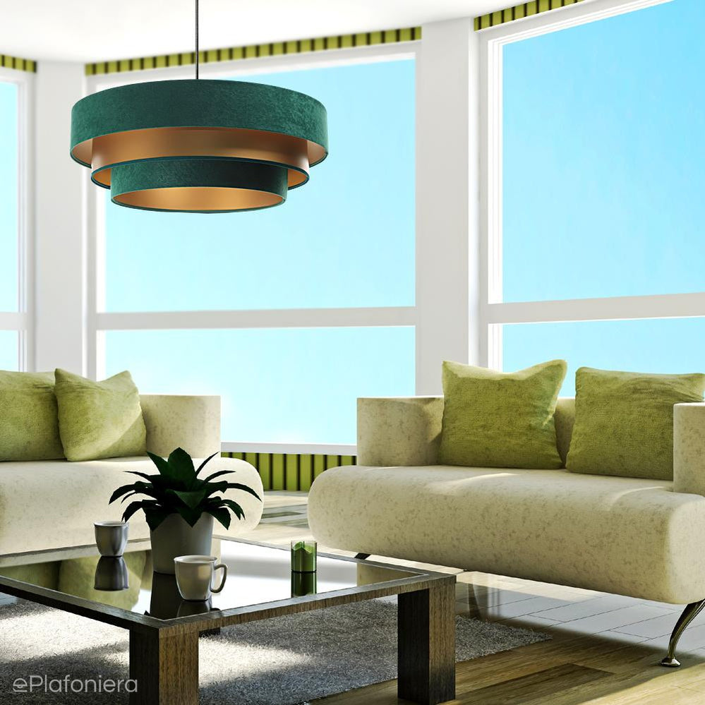 Welurowa lampa wisząca w stylu nowoczesnym oraz minimalistycznym , trzy współśrodkowe walce. Na zewnątrz walec jest pokryty welurem, a wewnątrz tworzywem sztucznym odbijającym światło.