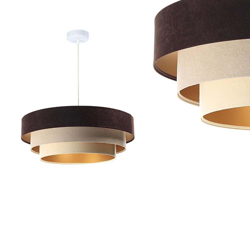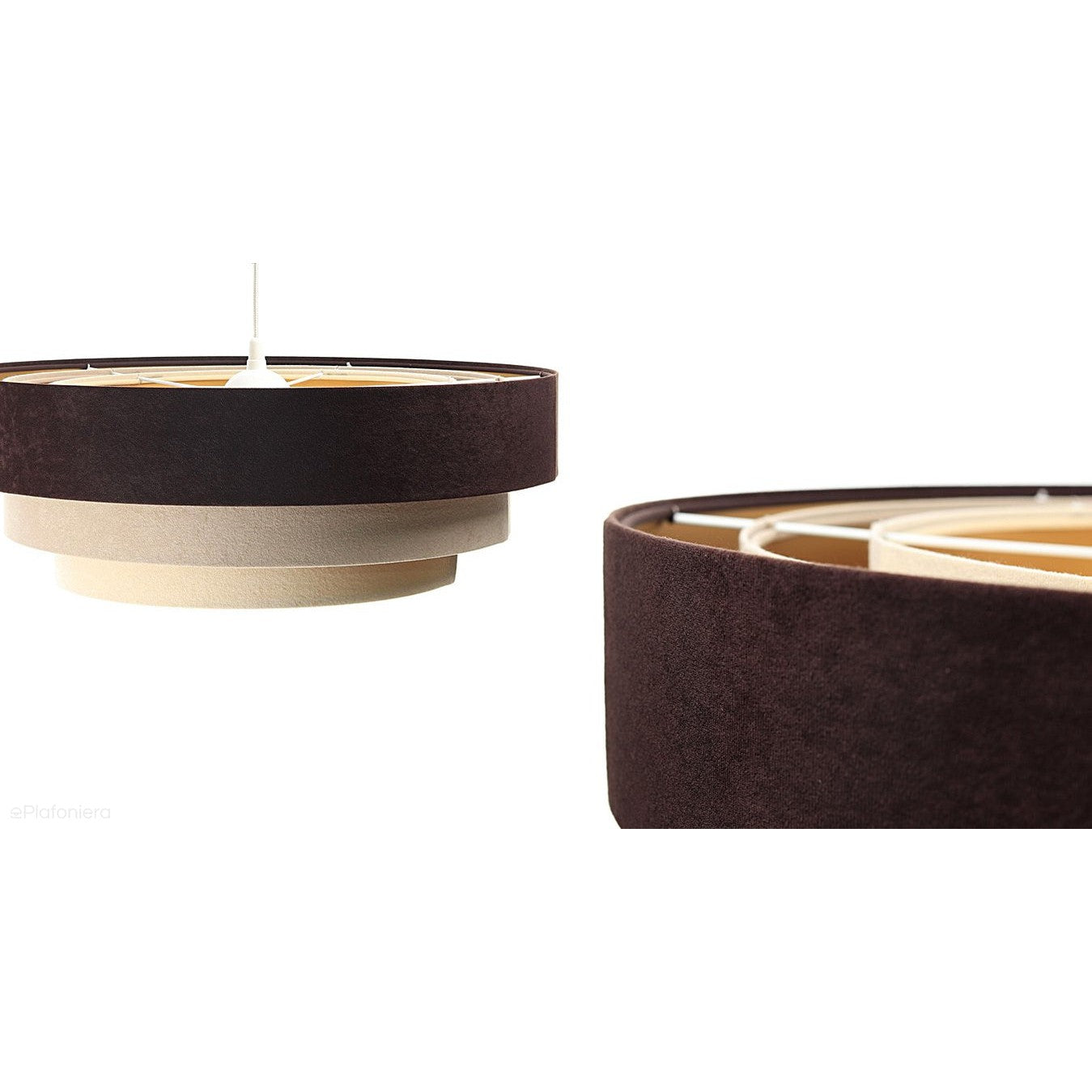 Welurowa lampa wisząca w stylu nowoczesnym oraz minimalistycznym , trzy współśrodkowe walce. Na zewnątrz walec jest pokryty welurem, a wewnątrz tworzywem sztucznym odbijającym światło.