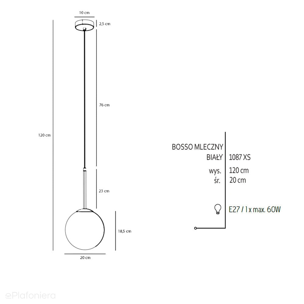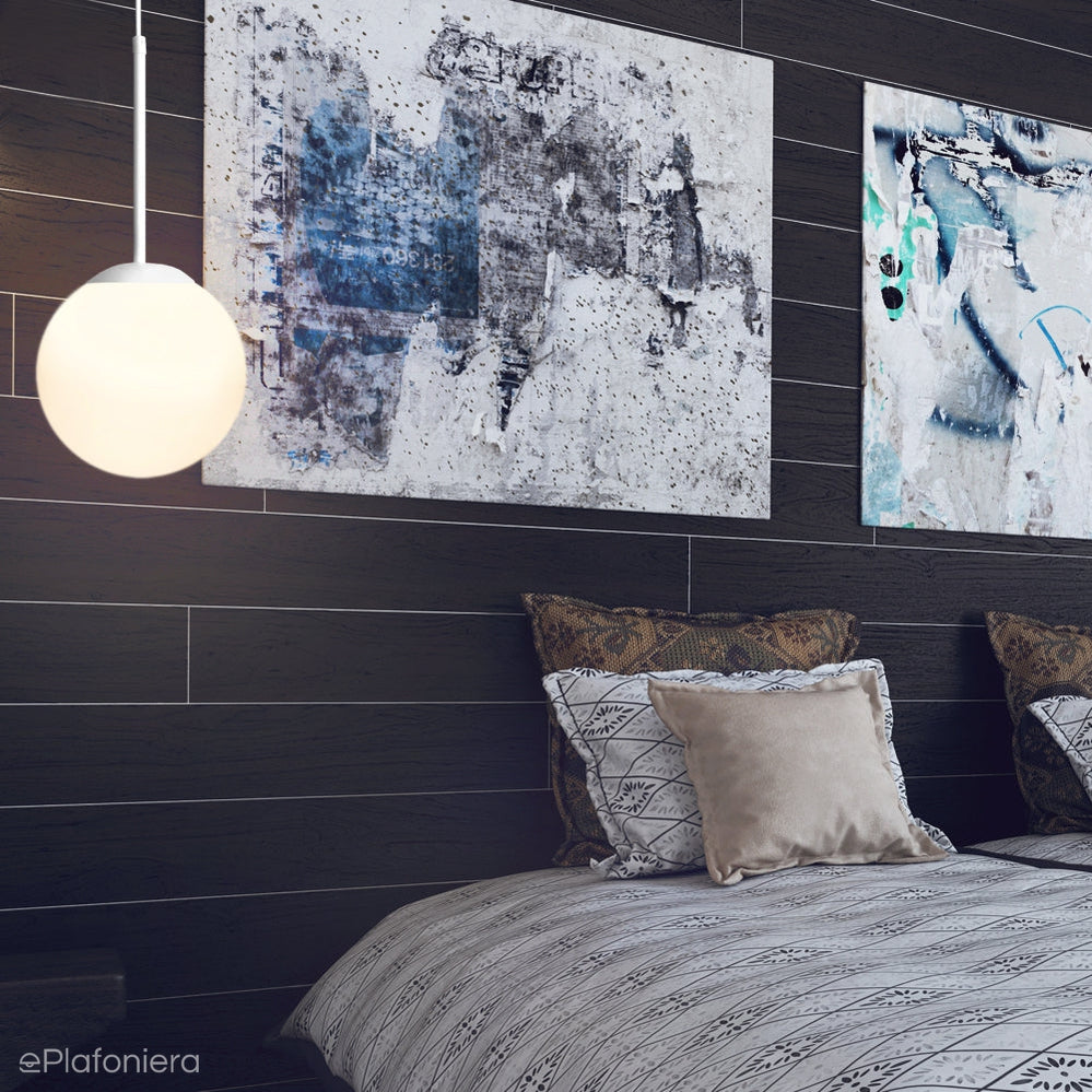 Lampa wisząca, zawiesie białe (20cm) jedna mleczna kula (E27) Aldex (Bosso) 1087XS