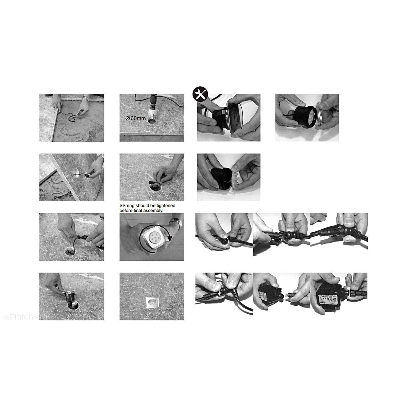 Lampa najazdowa o barwie białej ciepłej 3000K do zabudowy do każdej powierzchni, do desek tarasowych, terakoty, marmuru, kostki brukowej.