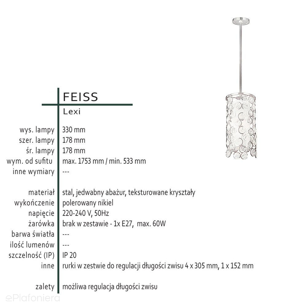 Lampa kryształowa (polerowany nikiel) wisząca 18cm - abażur jedwab do sypialni salonu (1xE27) Feiss (Lexi)