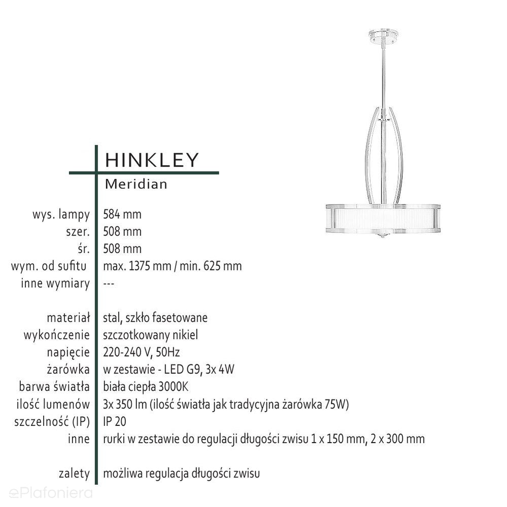 Lampa wisząca, żyrandol Meridian - Hinkley (50cm, nikiel) do kuchni, salonu, sypialni (G9 3x4W)