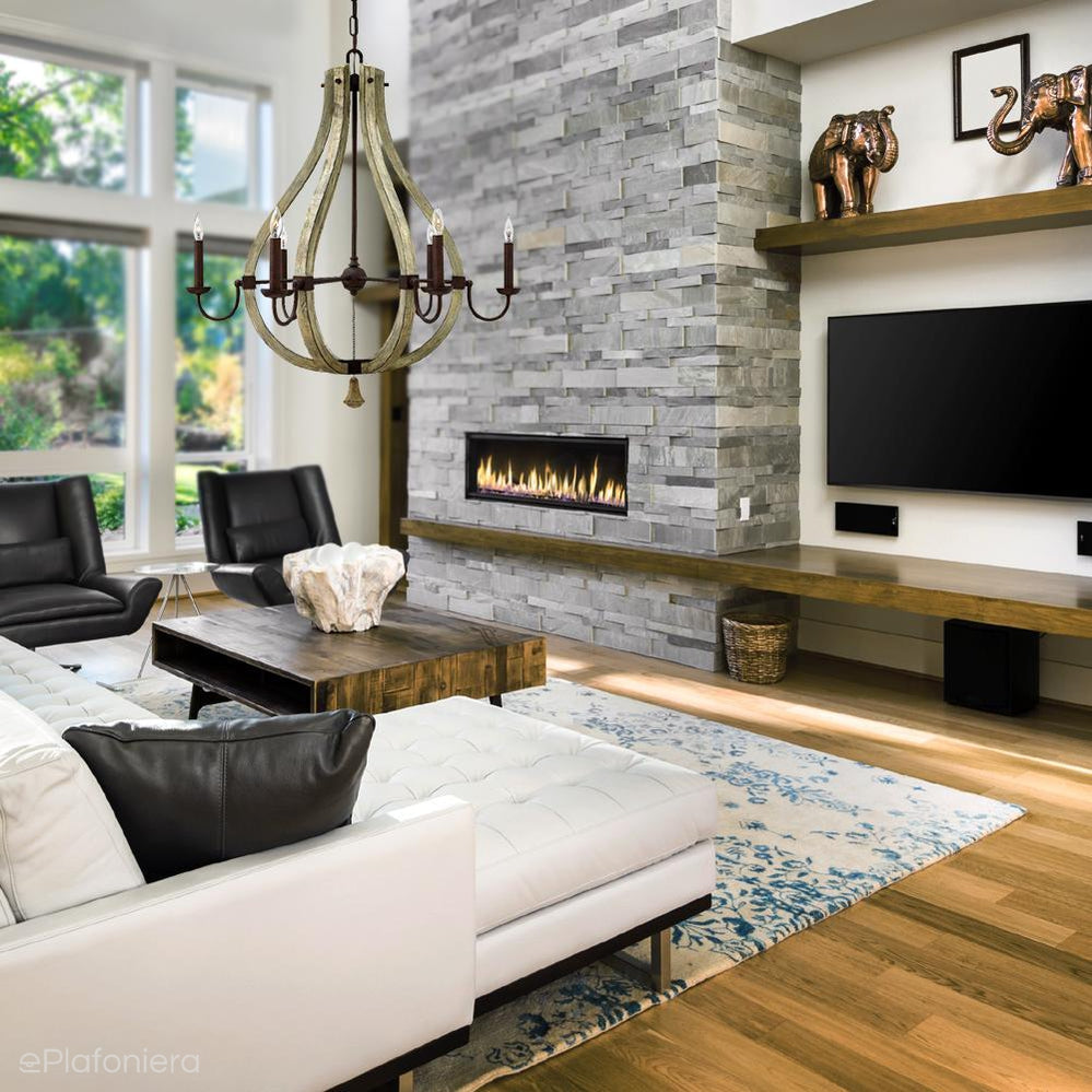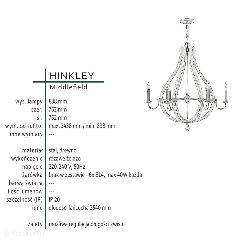 Drewniana lampa wisząca 76cm (rdzawe żelazo) do salonu kuchni sypialni (6xE14) Hinkley (Middlefield)