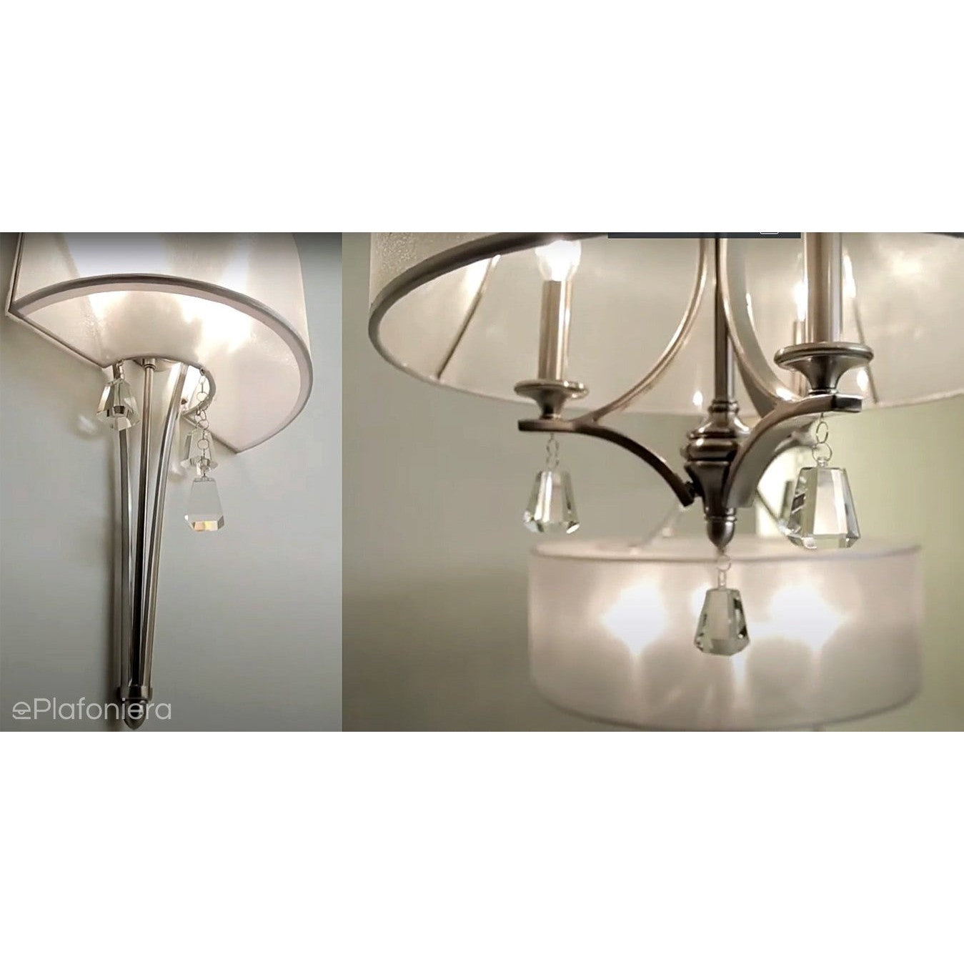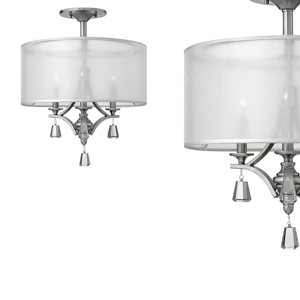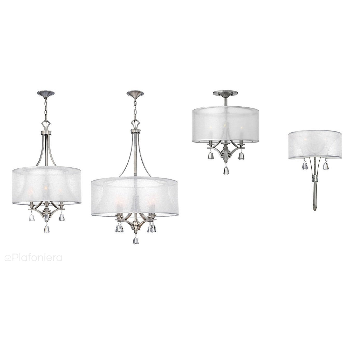 Lampa sufitowa 45cm (nikiel, utwardzony abażur, kryształy) do sypialni salonu (3xE14) Hinkley (Mime)