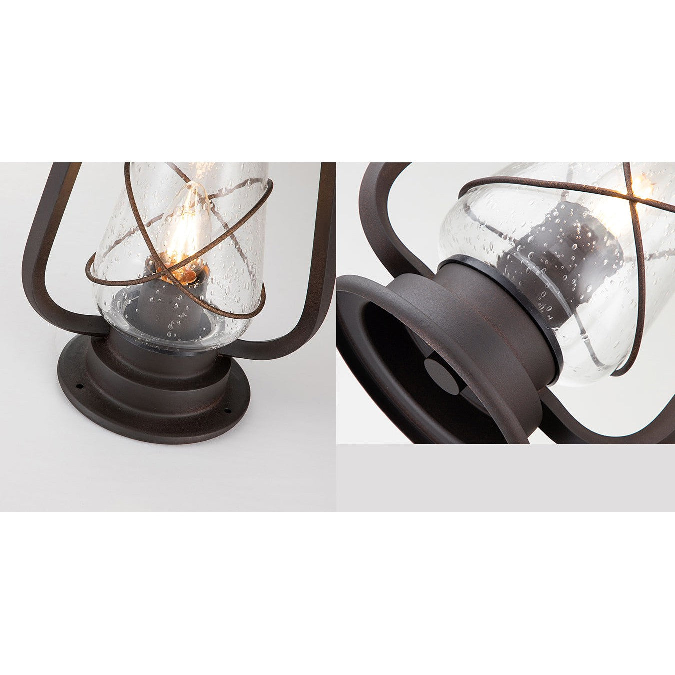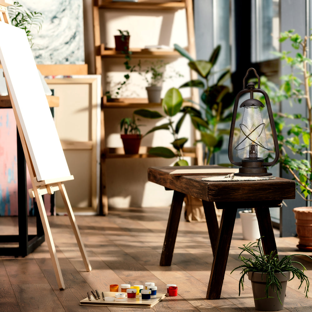 Industrialna lampa zewnętrzna stojąca, w stylu vintage, posiada stopień ochronności IP44, czerpie inspirację z dawnych latarni, które zapalane były dzięki świecom, gazowi lub olejowi.