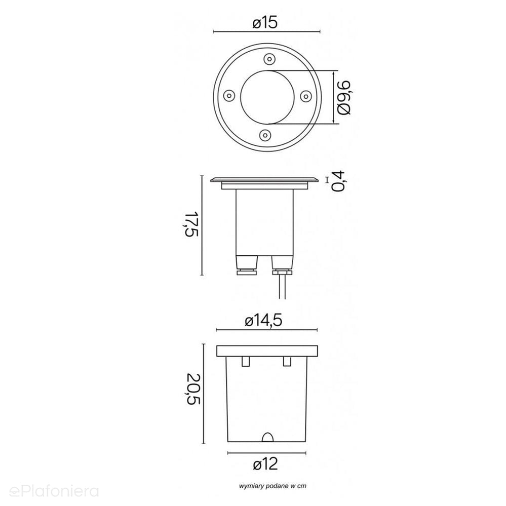 Nowoczesna lampa ogrodowa, zewnętrzna o wysokim systemie szczelności IP 67, z regulowanym kątem nachylenia strumienia światła w zakresie 23 stopni w pionie, najazdowa, do wbudowania w powierzchnie, takie jak: kostka brukowa, glazura, terakota, deski, beton lub bezpośrednio w grunt, o dopuszczalnym nacisku statycznym do 1 tony oraz dynamicznym do 1,5 tony.