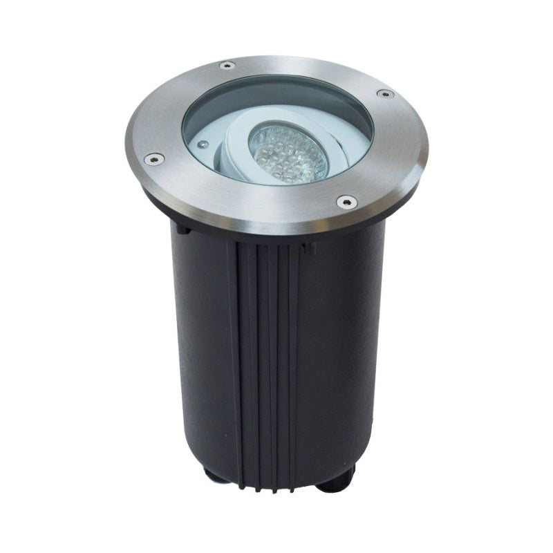 Korpus lampy okrągły, wykonany z aluminium, pierścień ze stali nierdzewnej, szybka ze szkła hartowanego. Idealnie nadaje się do podświetlania budynków, ścian, drzew i krzewów od dołu.