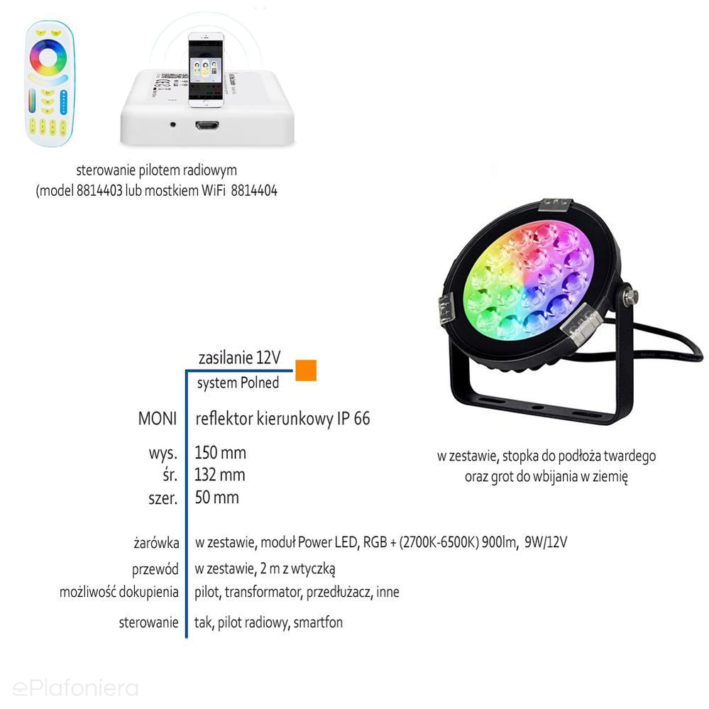 Reflektor kierunkowy, lampa ogrodowa zewnętrzna IP 66 (9W, RGB + 2700K-6500K) (system 12V LED) Moni