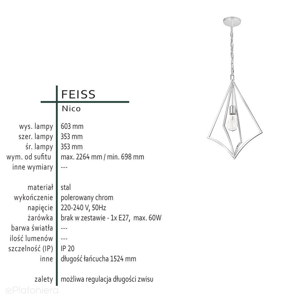 Chromowa lampa wisząca Nico (polerowany chrom) - Feiss, 35x60cm / 1xE27