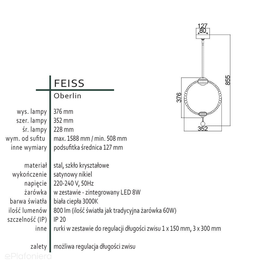 Szklane kryształy, wisząca kula 35cm, lampa LED, do salonu sypialni (8W, 800lm) Feiss (Oberlin)